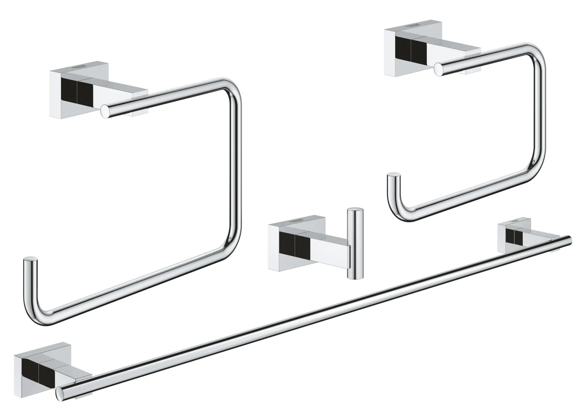 - Includes towel ring (40 510 001), robe hook (40 511 001), toilet paper holder (40 507 001), 24-in. towel bar (40 509 001)