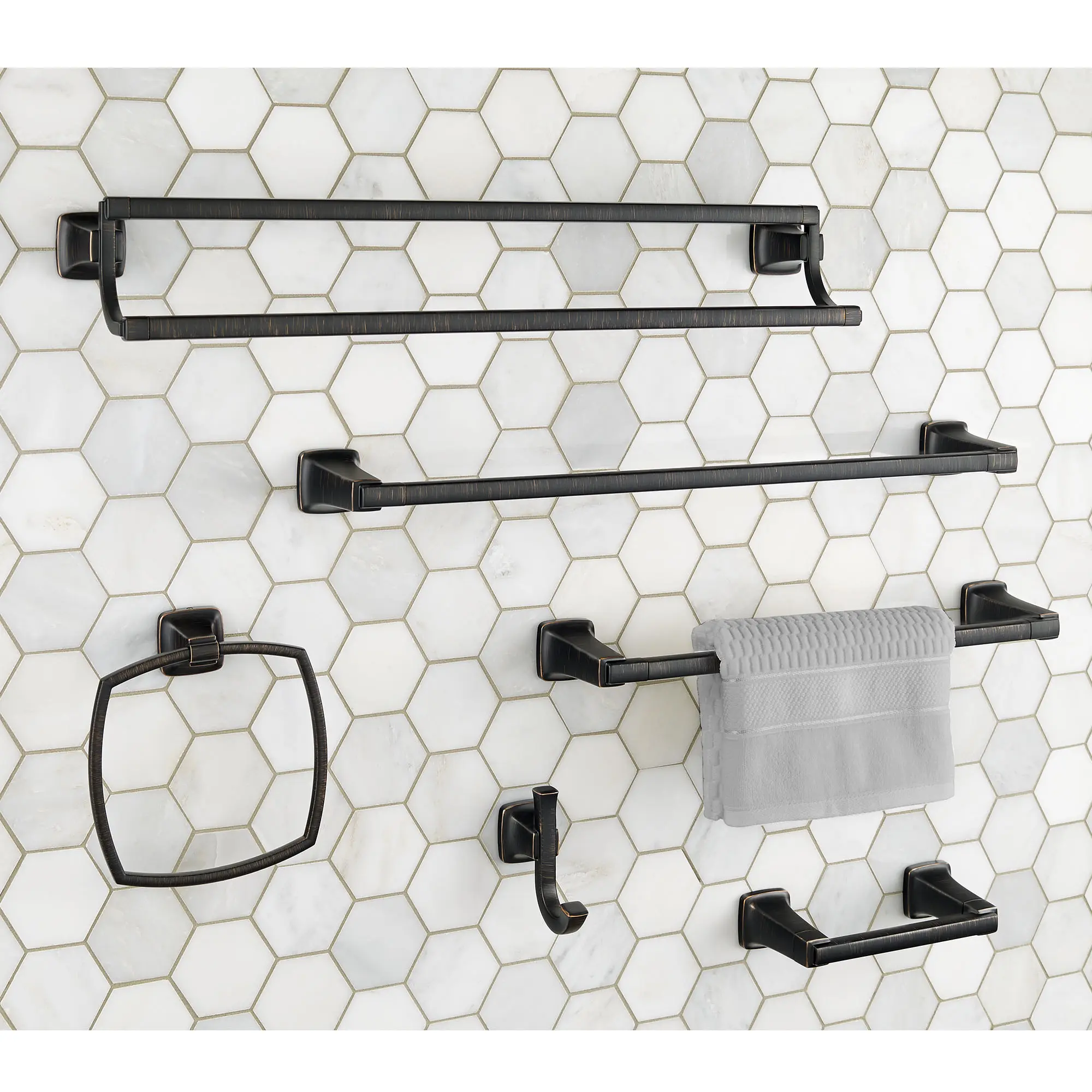 The Townsend Towel Ring from American Standard accents a bathroom with its clean lines and architecturally inspired design. A part of the expertly coordinated Townsend Collection, the towel ring is made of sturdy metal with concealed mounting - so no screws are exposed, creating a seamless look. This easy-to-install towel ring is available in a variety of finishes.