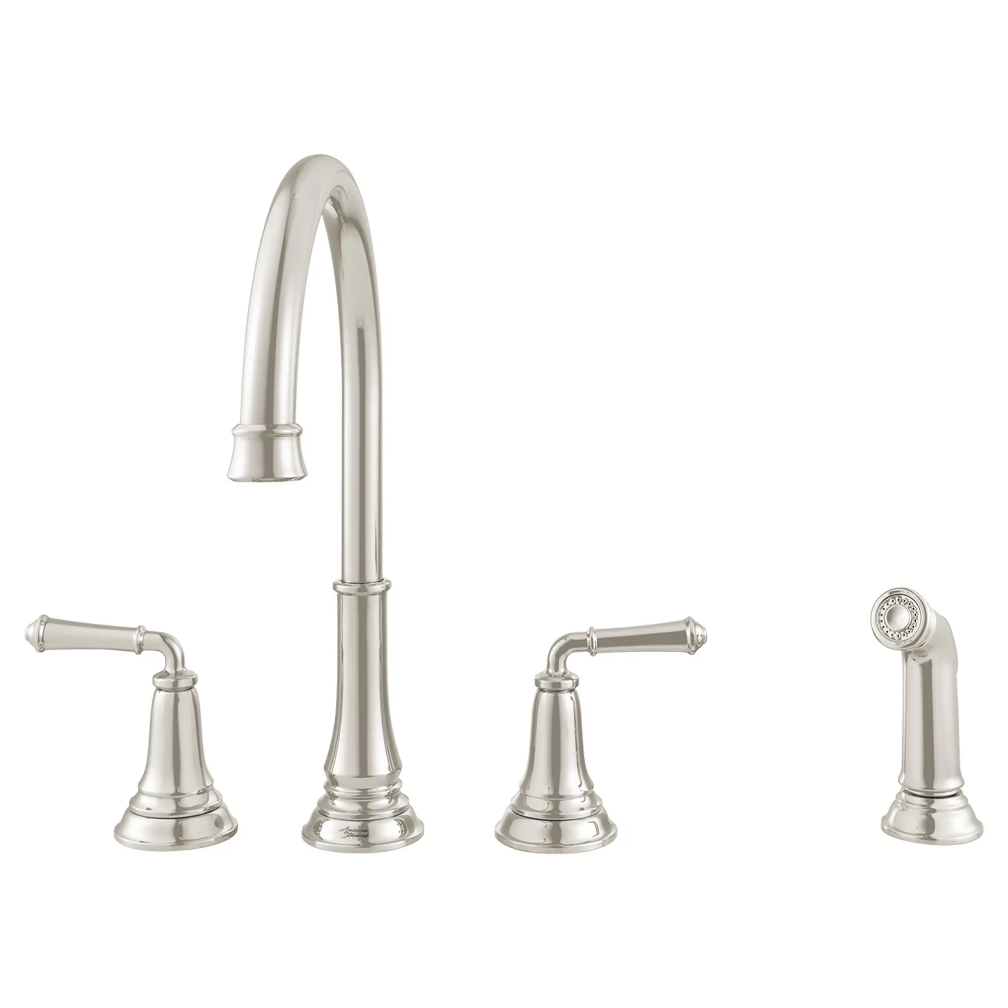 The Delancey kitchen faucet from American Standard is classically designed to coordinate beautifully in a traditional styled kitchen. With a durable brass spout and body, and a lifetime of drip-free performance, the Delancey kitchen faucet is crafted to withstand daily use. A coordinating side spray is a stylish addition that makes it easy to wash larger dishes, pots, and pans. A flow rate of 1.5 gallons per minute help to save water without sacrificing performance.