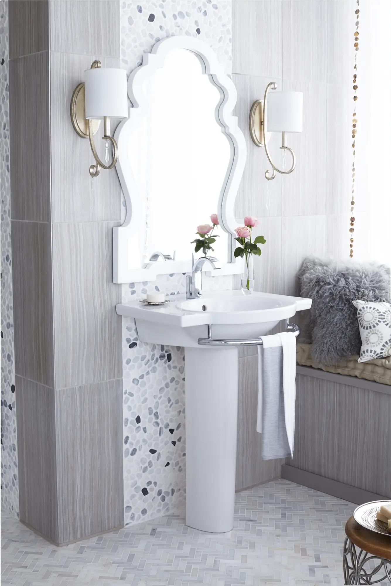 • Design coordinates with Estate® collection with fixtures and faucets