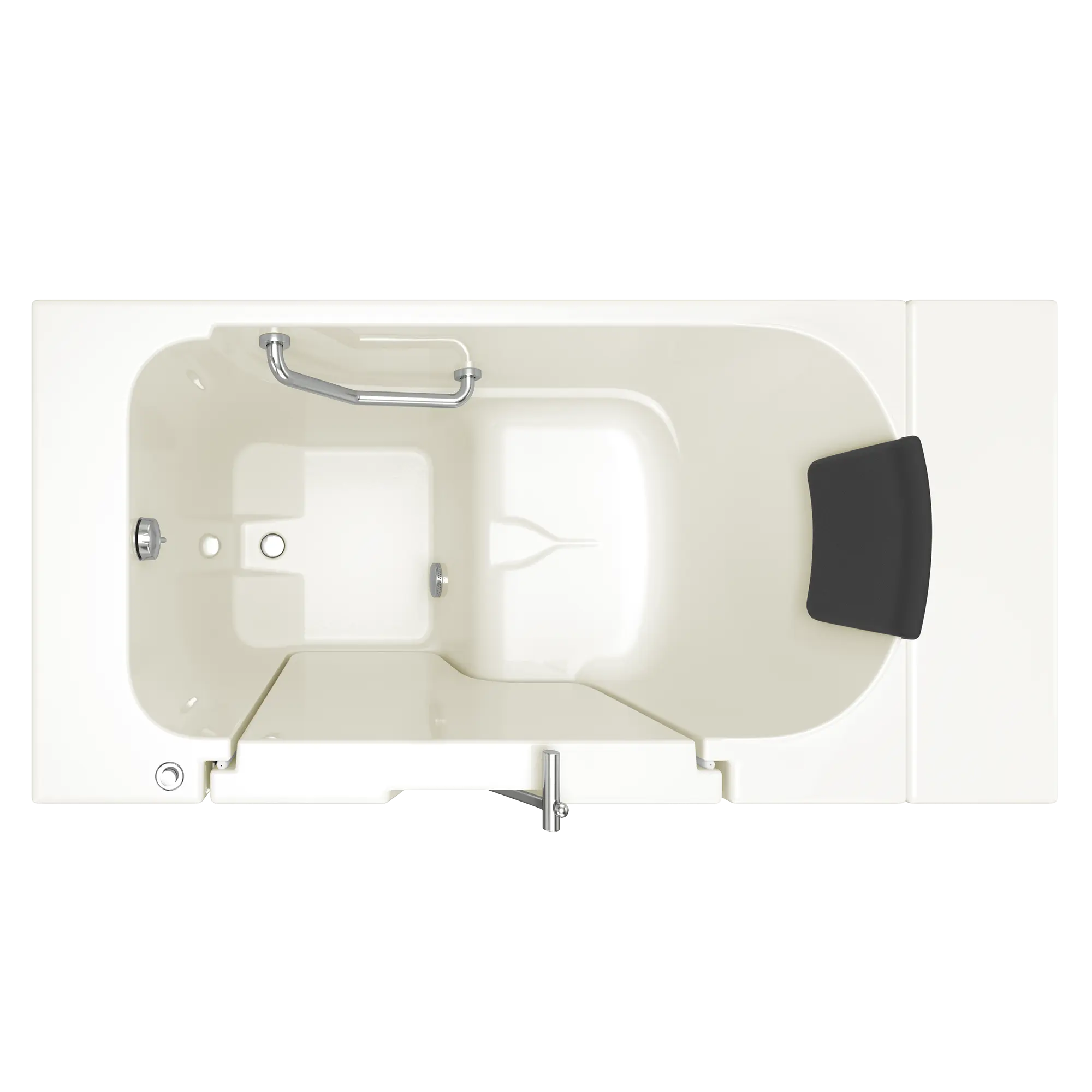 - A built-in safety grab bar and textured bath floor increases your level of bathing independence and delivers peace of mind by giving you fewer opportunities to slip or lose your balance