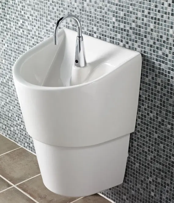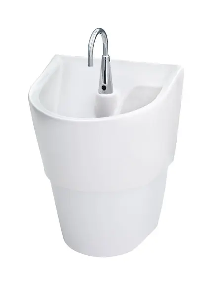 - Deep basin and sloped ledges minimize splashing
