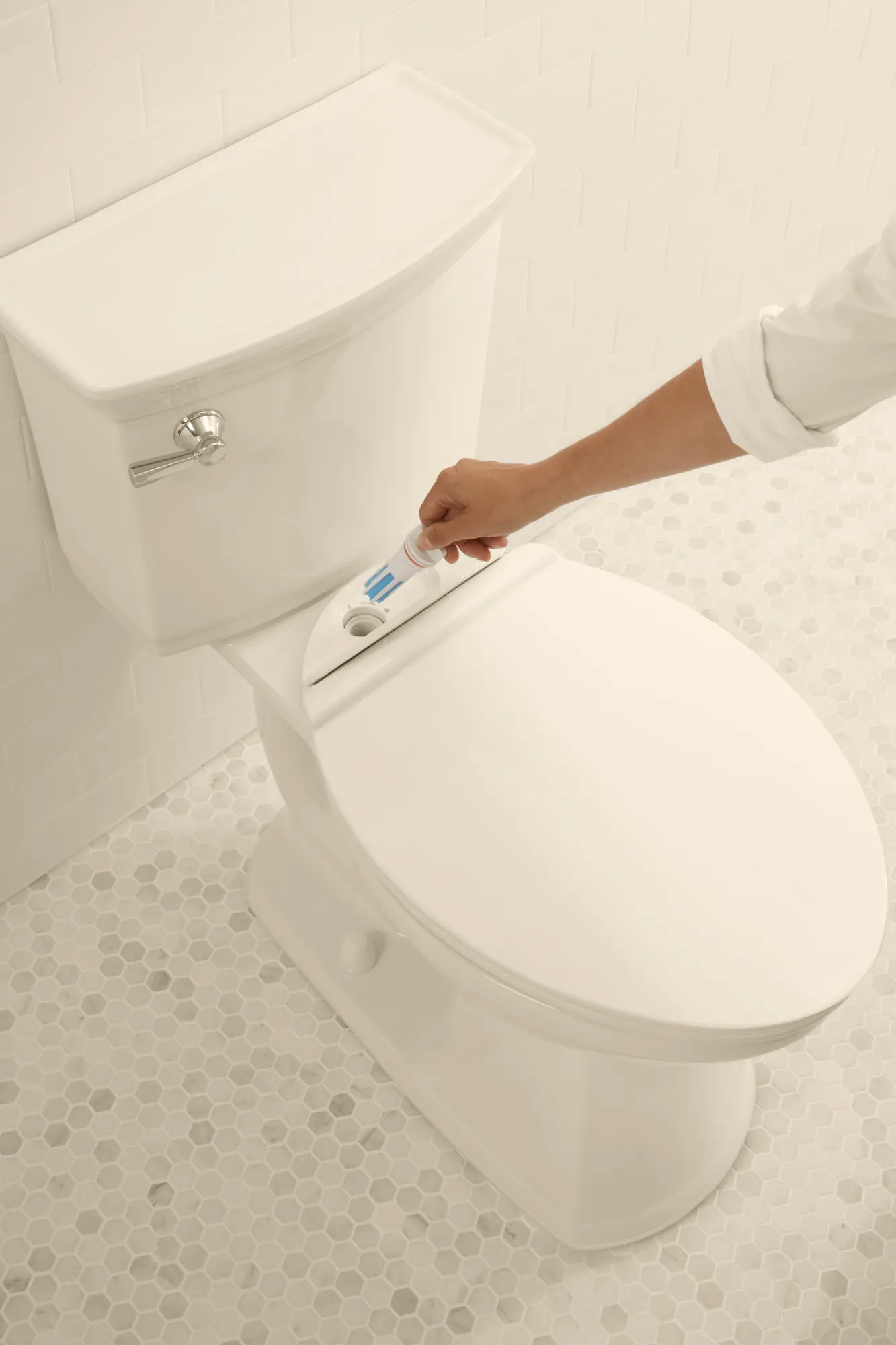 For less hassle while cleaning the toilet, the sensor can be powered off to avoid unwanted flushes by pressing the power icon located on the sensor.
