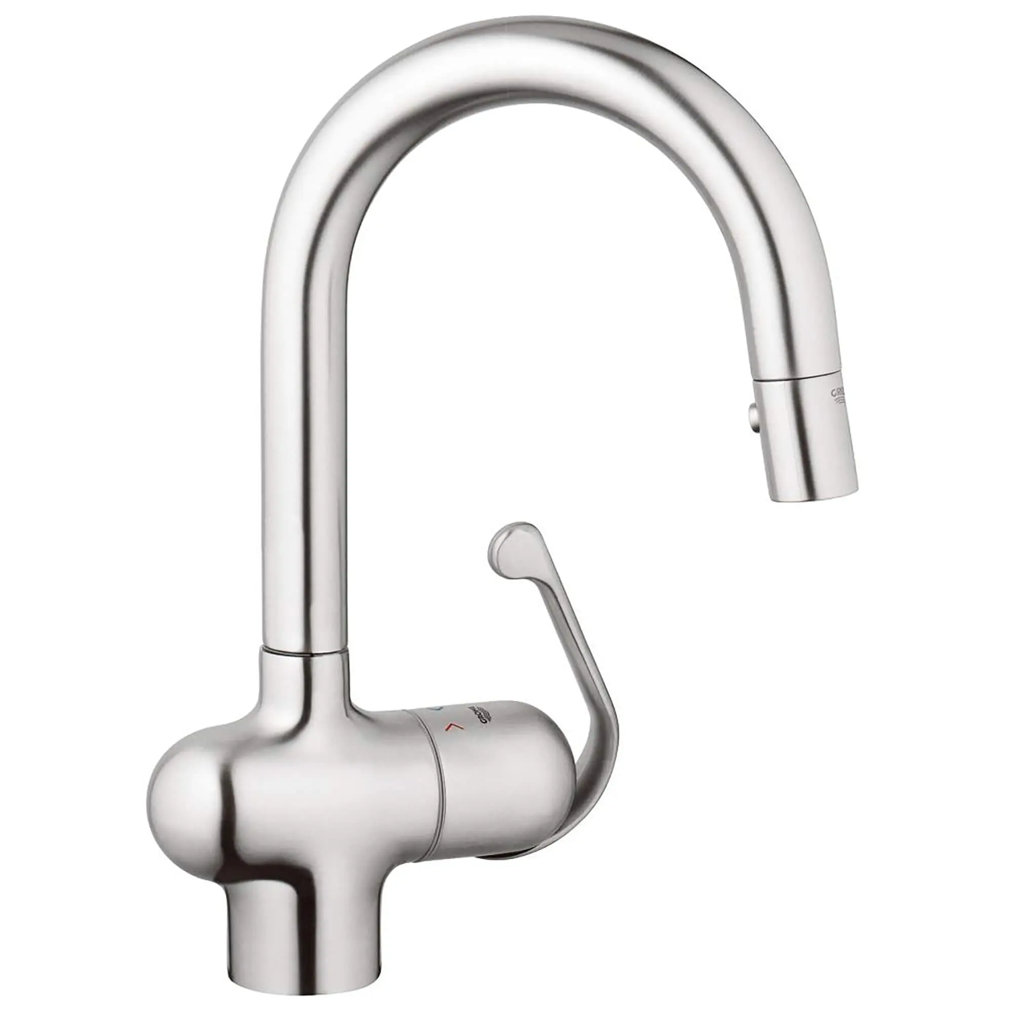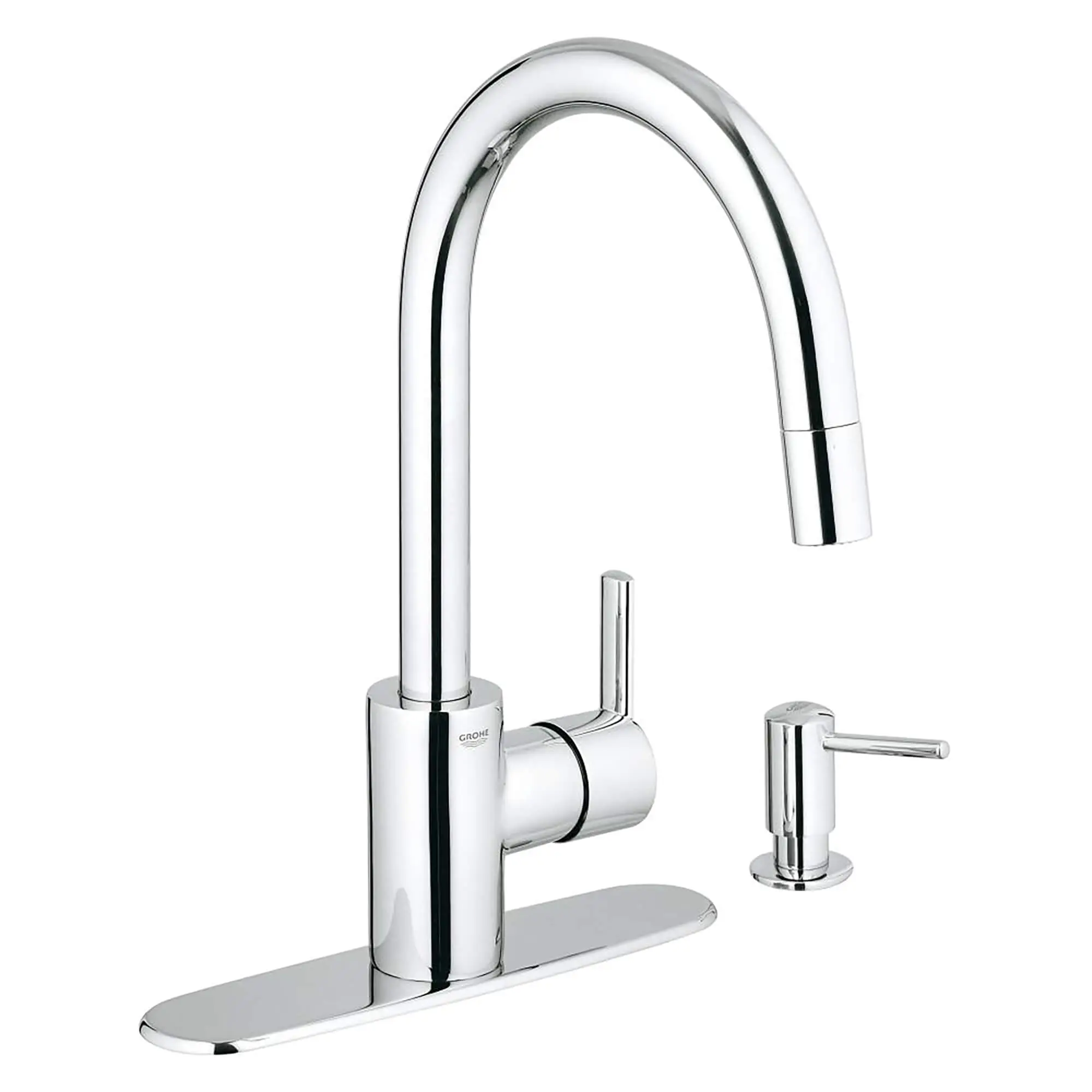 Includes GROHE SilkMove cartridge, which delivers smooth, effortless control of the water flow and temperature and a lifetime of maintenance-free operation GROHE StarLight technology produces a flawless, long-lasting surface that resists dirt and scratches, requires little maintenance and will retain its beauty through a lifetime of use Pull-down spray head allows for easy switching between an aerated stream for regular washing and a vigorous spray function for heavy-duty cleaning Spray head has GROHE SpeedClean nozzles, which require only a quick wipe of a hand or cloth to remove limescale and keep the faucet functioning optimally Swivel spout rotates 360 degrees for maximum coverage and accessibility EasyDock guarantees easy retraction and smooth docking for your pull-down spray head, every time. Forward rotating lever allows ample range of motion without backsplash interference Features GROHE Comfort Height for easy filling of large pots Includes optional deck plate and soap dispenser for a 1, 2, 3 or 4-hole installation Includes optional deck plate and soap dispenser for a 1, 2, 3 or 4-hole installation