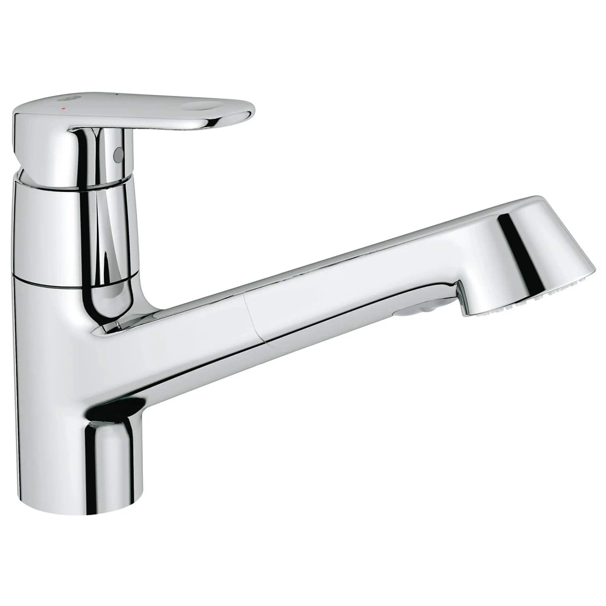 Includes GROHE SilkMove cartridge, which delivers smooth, effortless control of the water flow and temperature and a lifetime of maintenance-free operation GROHE StarLight technology produces a flawless, long-lasting surface that resists dirt and scratches, requires little maintenance and will retain its beauty through a lifetime of use Pull-down spray head allows for easy switching between an aerated stream for regular washing and a vigorous spray function for heavy-duty cleaning Spray head has GROHE SpeedClean nozzles, which require only a quick wipe of a hand or cloth to remove limescale and keep the faucet functioning optimally Swivel spout rotates 360 degrees for maximum coverage and accessibility EasyDock guarantees easy retraction and smooth docking for your pull-down spray head, every time. Forward rotating lever allows ample range of motion without backsplash interference Features GROHE Comfort Height for easy filling of large pots Includes optional deck plate and soap dispenser for a 1, 2, 3 or 4-hole installation Backed by the GROHE Limited Lifetime Warranty,GROHE Ecojoy 1.8 GPM flow rate conserves water without sacrificing performance