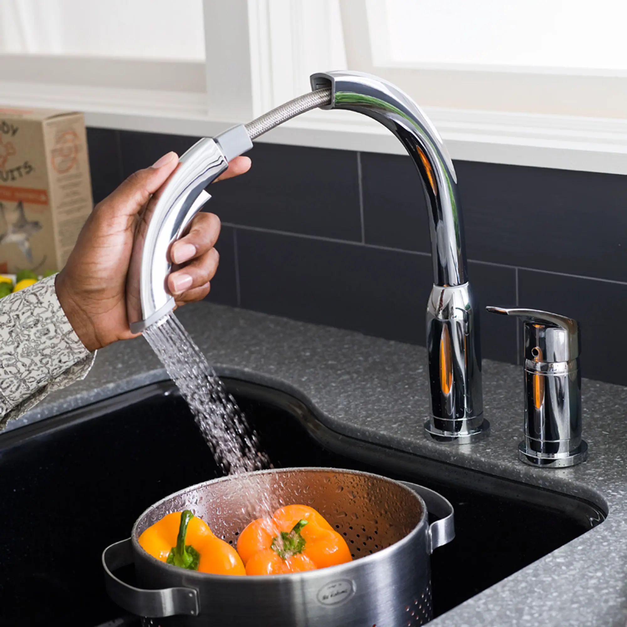 Flexible pull-out spray head that makes it easy to rinse, spray and fill wherever you need it Option for stream or spray with a single touch to make cleanup fast and easy Includes flexible installed supply lines with 3/8 in. compression connections Optional deck plate included for 1- or 3-hole installation Ceramic disc valve cartridge for smooth, precise valve control and a lifetime of drip-free, maintenance-free performance Memory position valving for turning the faucet on and off at your preferred temperatures without readjusting the handle position each time Integral check valves to prevent back flow Worry-free, drip-free and built to last, backed by a limited lifetime manufacturer warranty on the function and finish Lead-free construction Flow rate of 1.8 gpm (gallons per minute),Sustainability CEC Listed