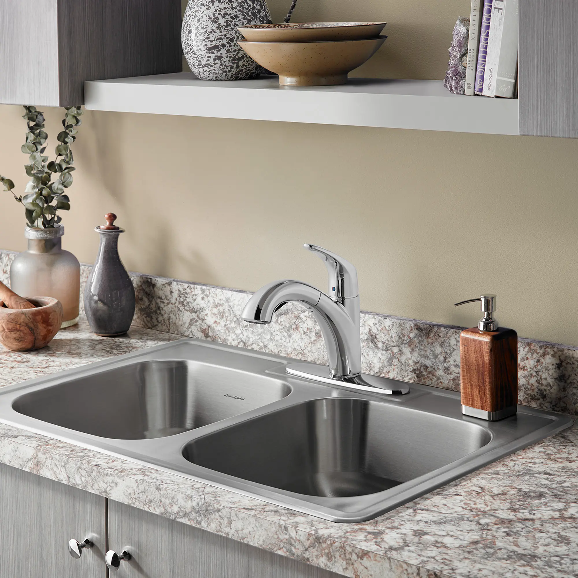 American Standard Kaleta High-Spout Pull-Down Kitchen Faucet with Soap Dispenser (Stainless Steel (075))