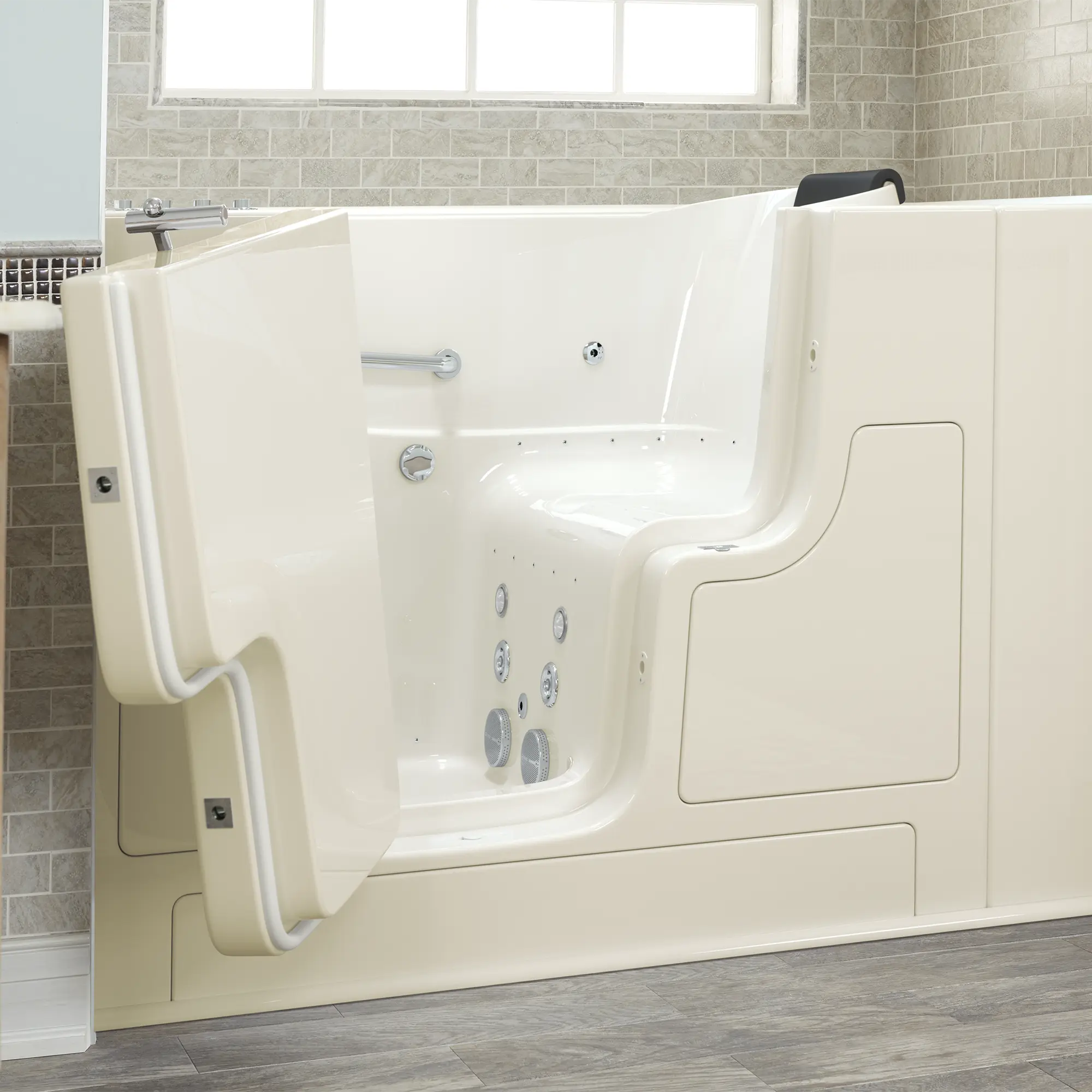 - The full-sized, watertight outward opening door is a partial-transfer and has a low threshold that allows ease of entry and has a lifetime warranty on the door seal, a 10 year warranty on the tub shell and a 5 year warranty on all other components
