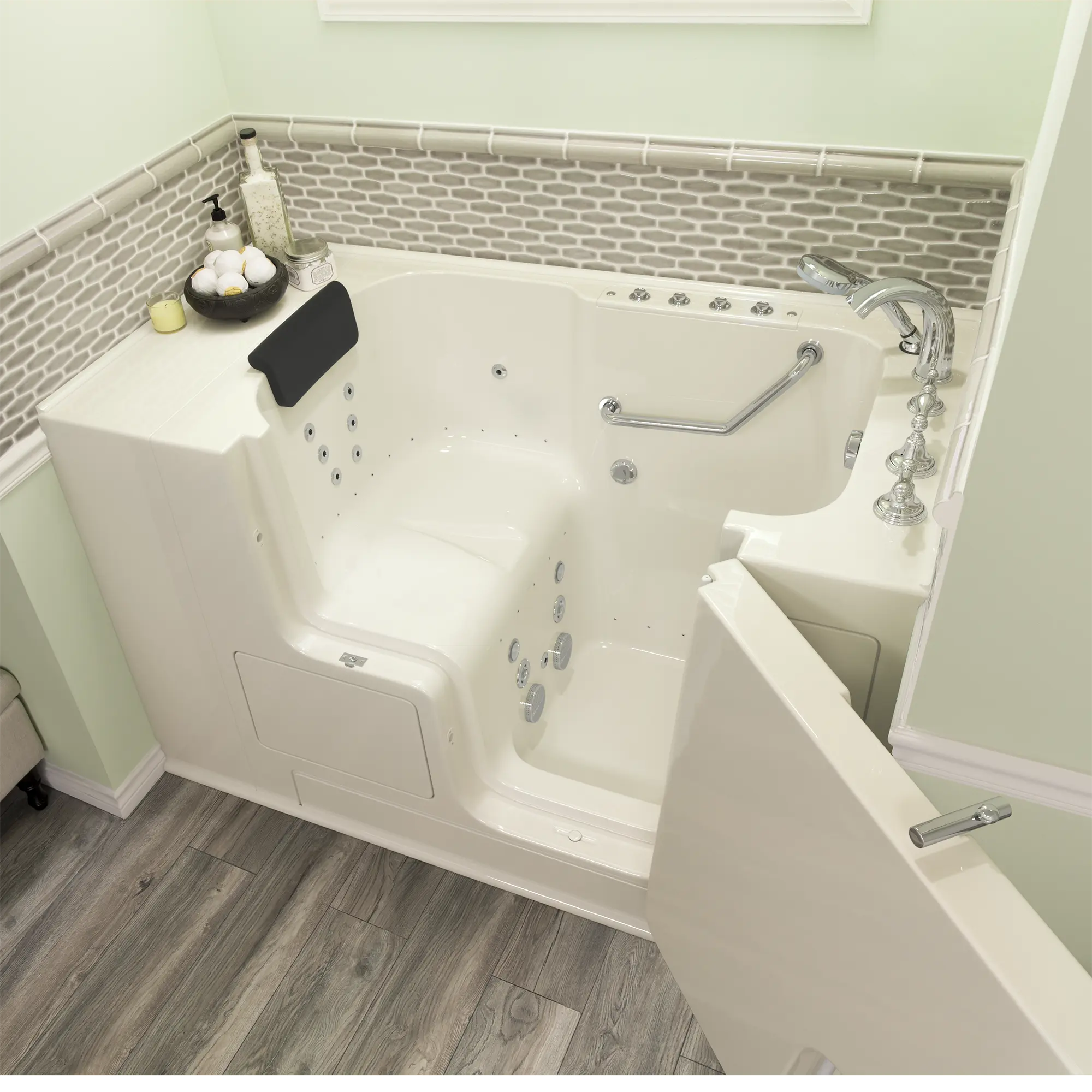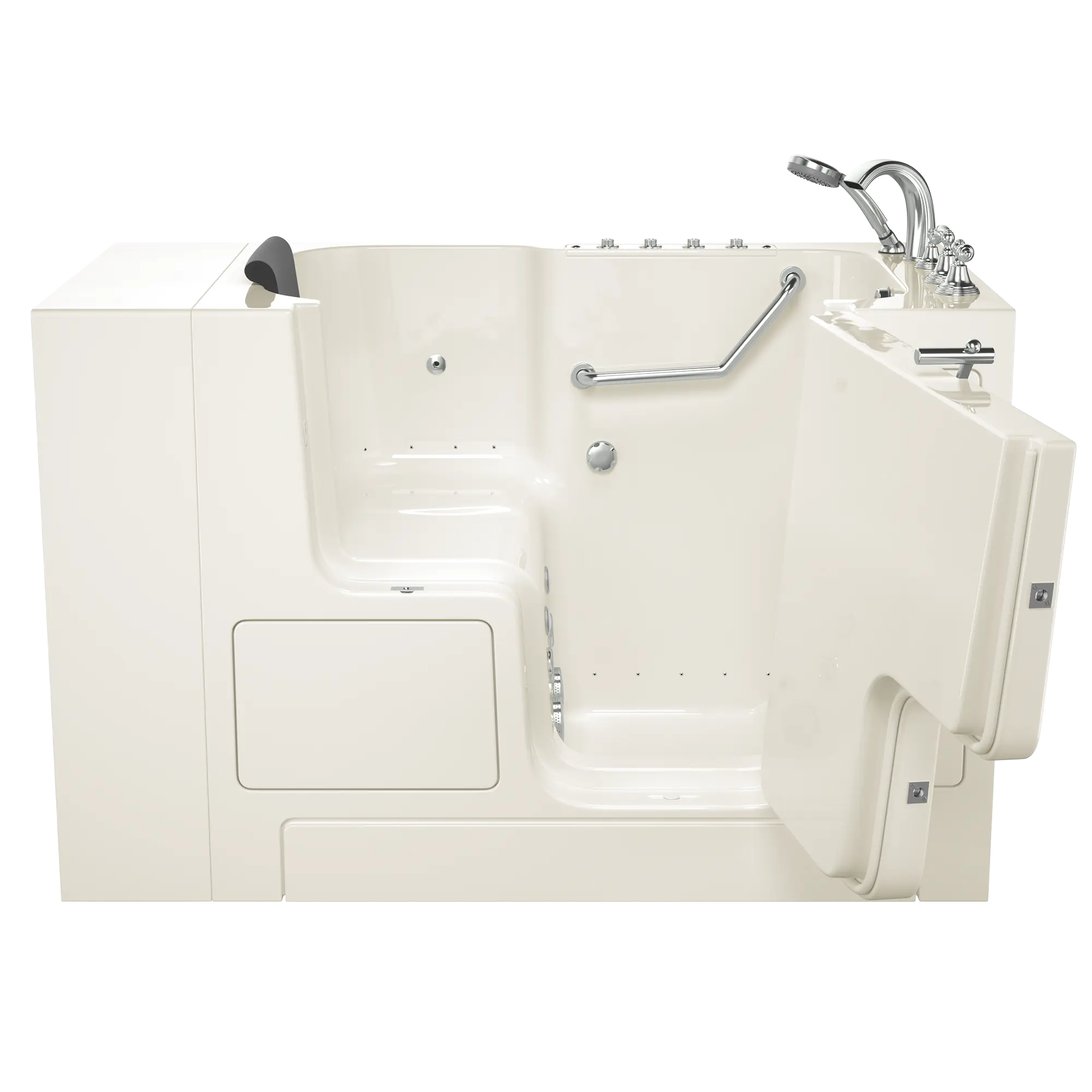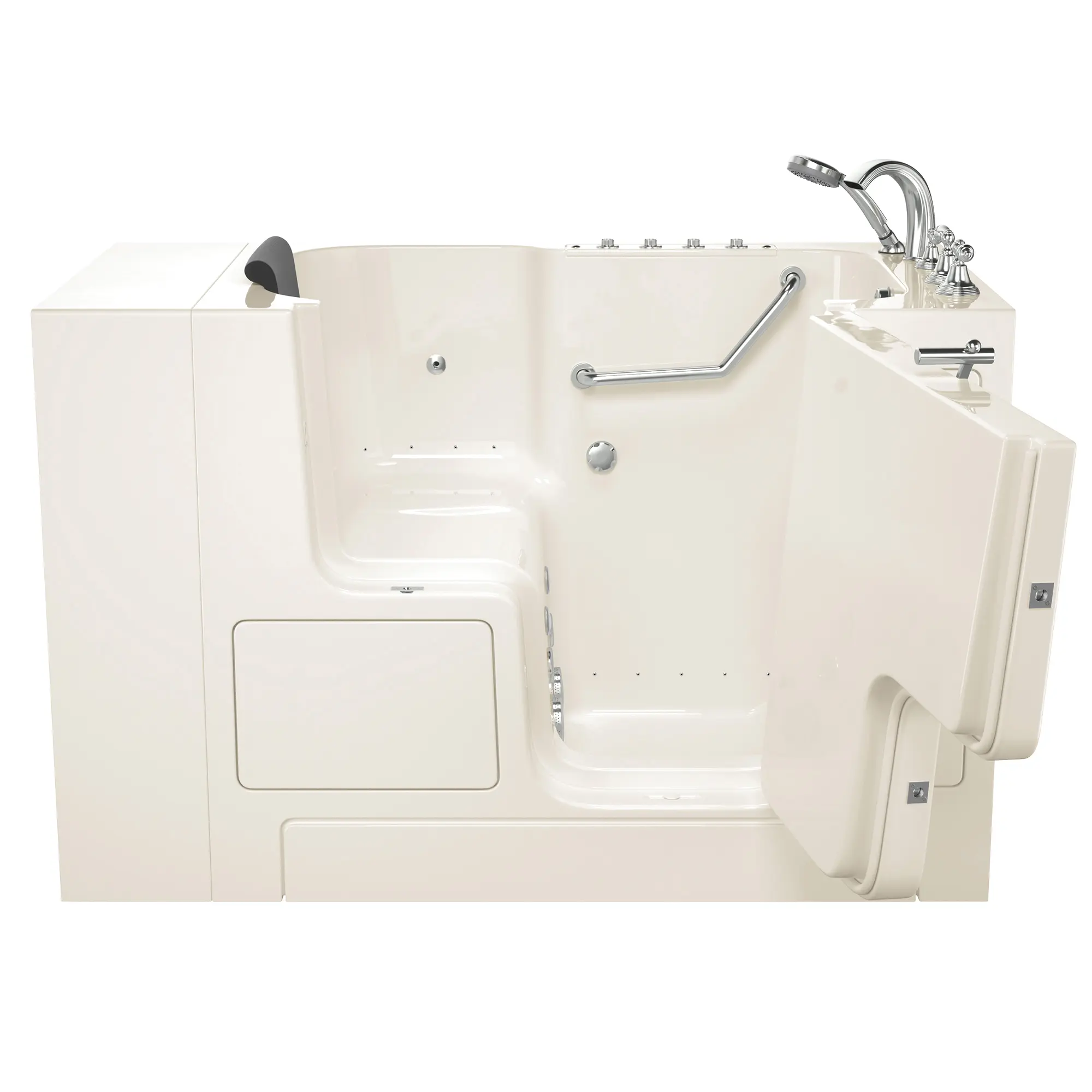 - The full-sized, watertight outward opening door is a full-transfer and has a low threshold that allows ease of entry and has a lifetime warranty on the door seal, a 10 year warranty on the tub shell and a 5 year warranty on all other components
