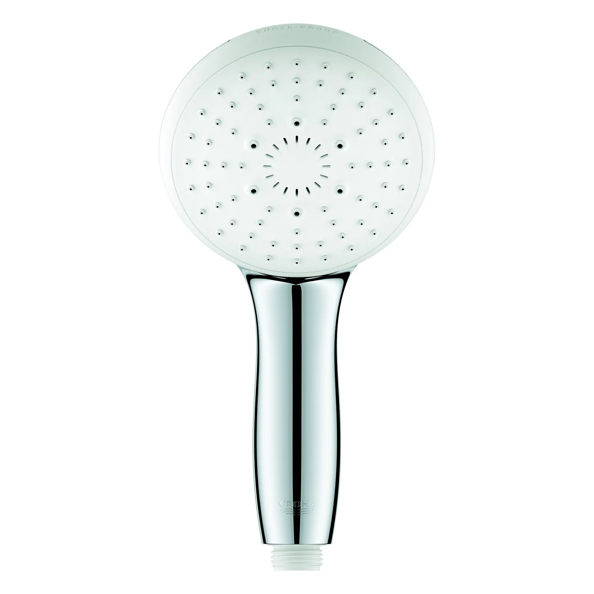 The Tempesta 110 Round Hand Shower from GROHE features the GROHE SmartSwitch that makes it easy to change from a soothing Rain spray to a powerful Jet spray or a relaxing Massage spray. Designed and engineered in Germany, this contemporary hand shower promises an enhanced showering experience. The 4 ¼-inch spray face offers generous coverage, and GROHE EcoJoy technology conserves water while maintaining superior performance.