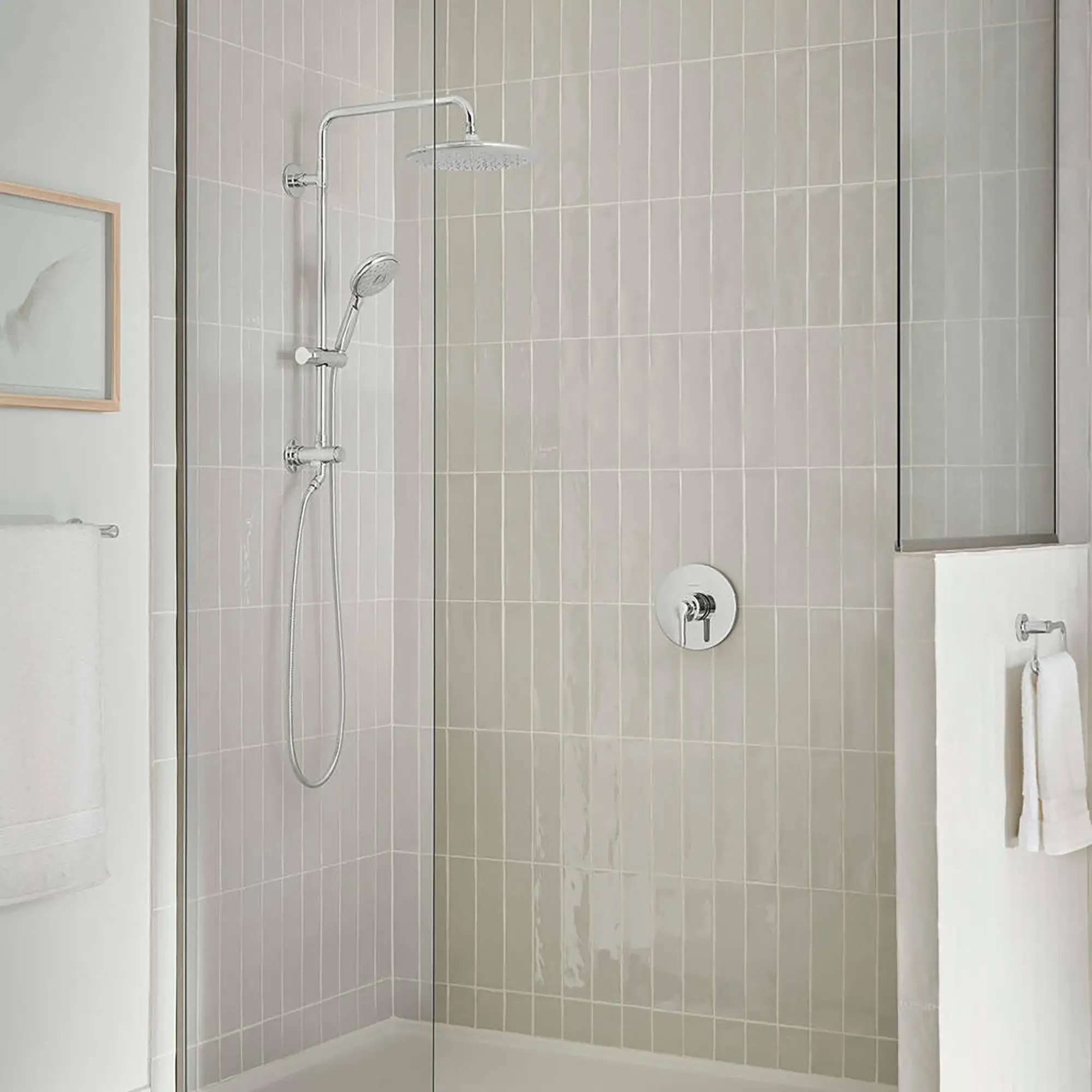 - Easy installation for retrofit, renovation or new construction eliminates drilling or damage to tile