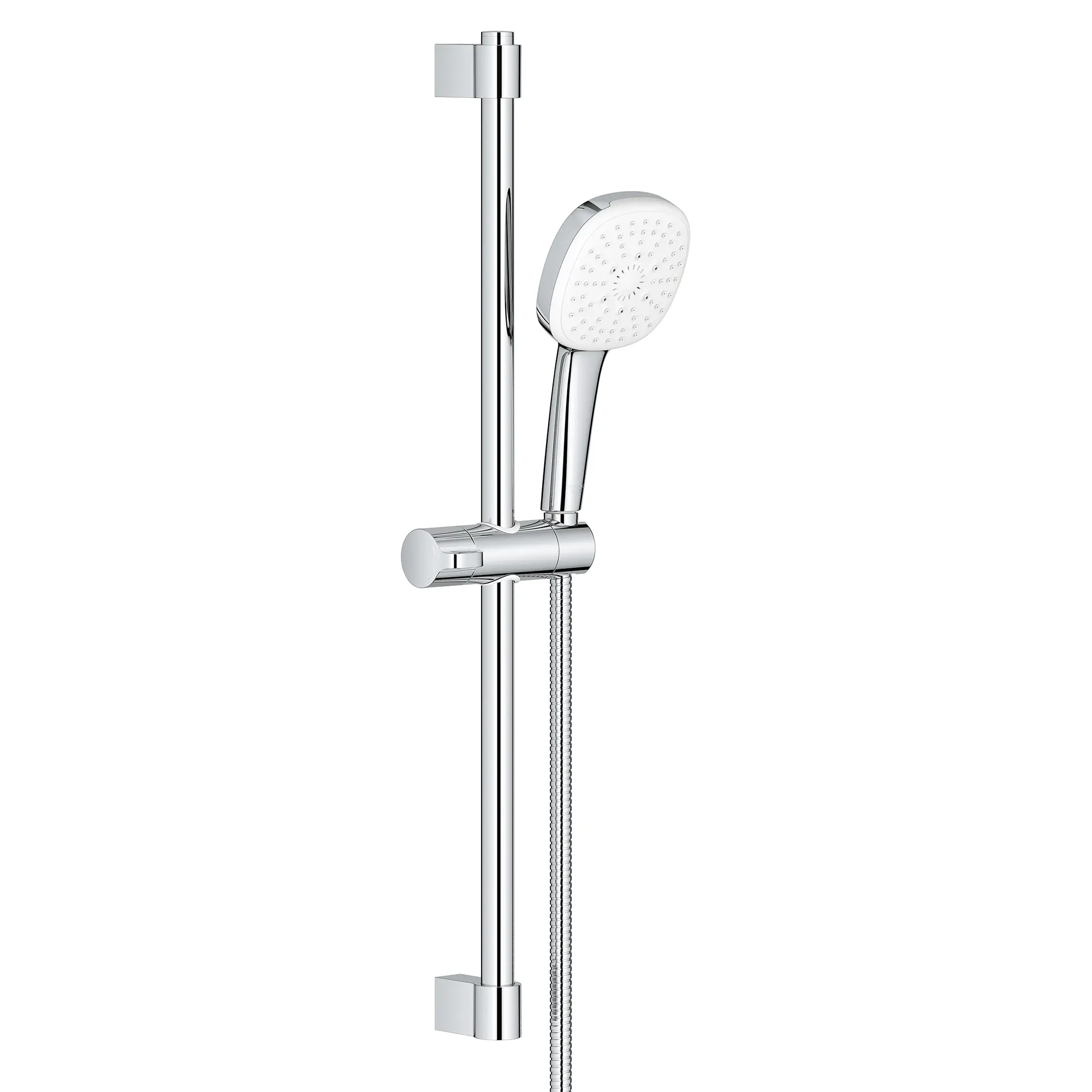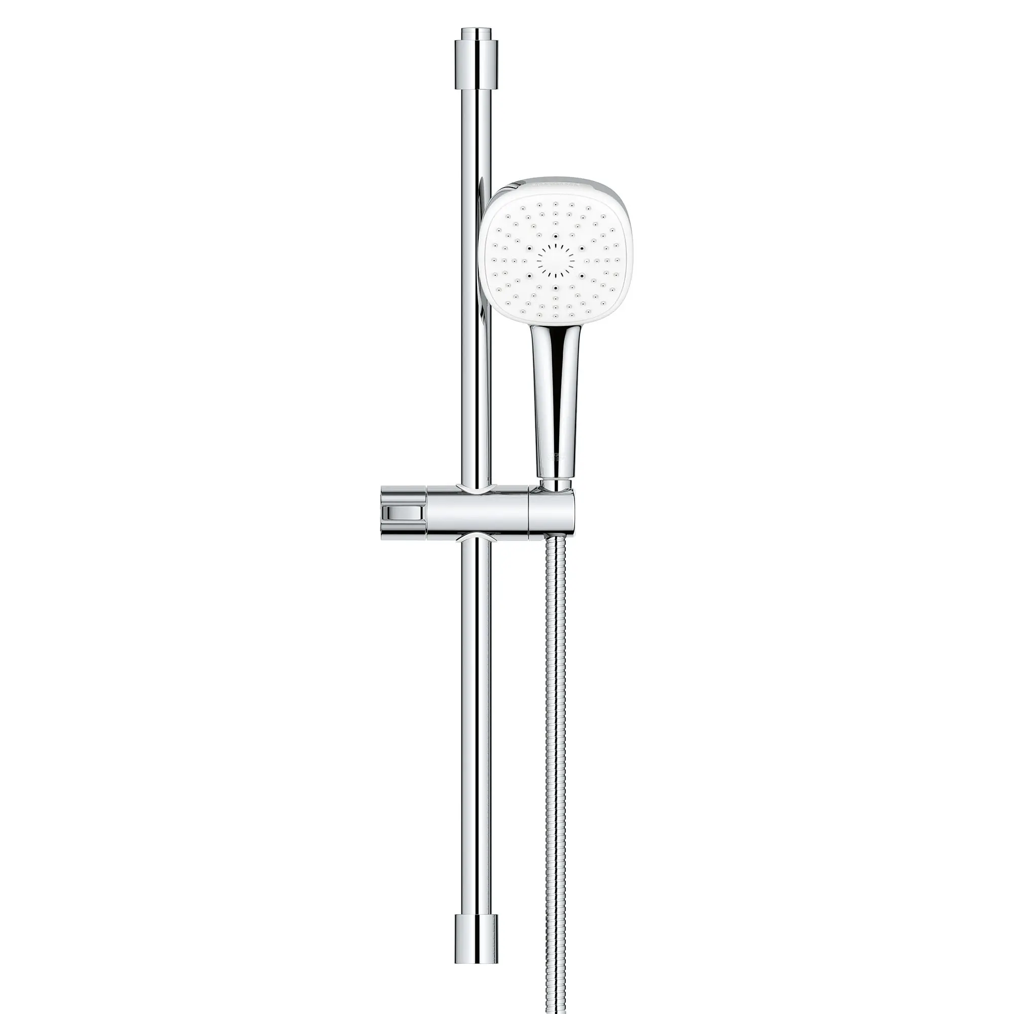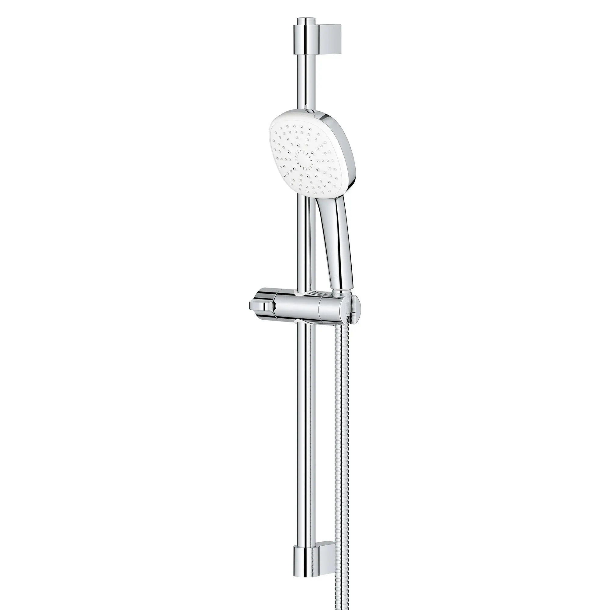 The Tempesta 110 Cube 24-inch Shower Rail Set from GROHE features the Tempesta 110 Cube Hand Shower with innovative SmartSwitch dial that makes it easy to change from a soothing Rain spray to a powerful Jet spray or a relaxing Massage spray. The 4 ¼-inch spray face offers generous coverage. Designed and engineered in Germany, this contemporary shower rail set also includes a sleek, 24-inch (600 mm) rail with gliding hand shower holder, metal shower hose, and adjustable upper bracket to cover existing holes when installing.
